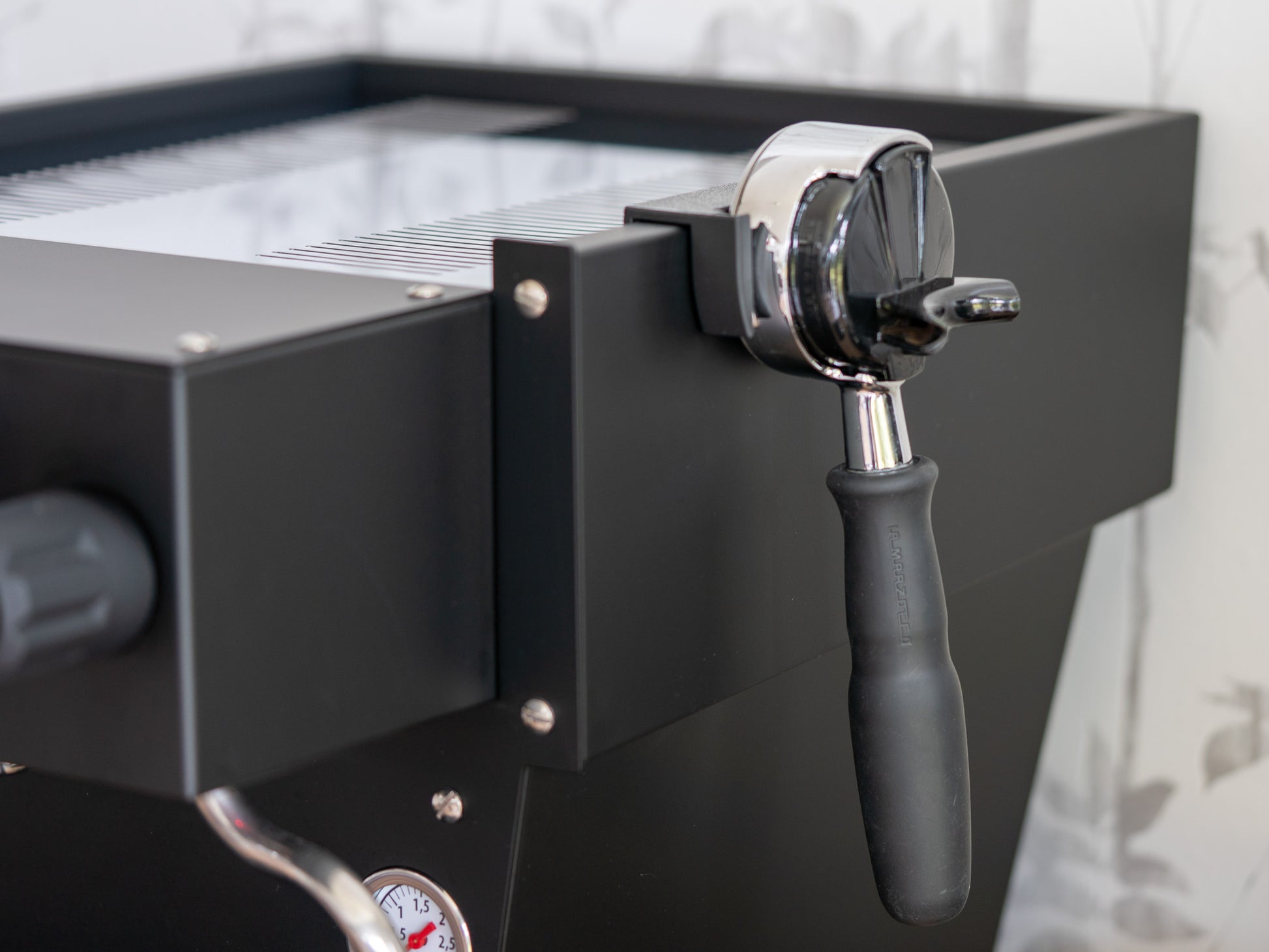 Portafilter holder for La Marzocco Linea Mini / Mini R: This 58mm portafilter holder simply slides on and keeps your portafilter ready at hand on the machine frame. The TPU inlay protects the machine from scratches and ensures a secure fit.
